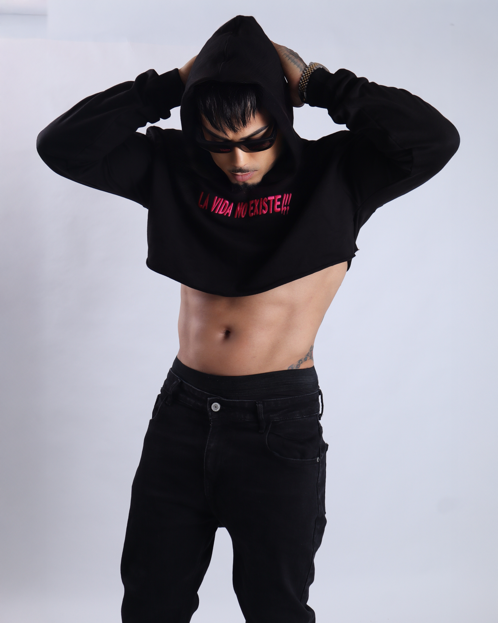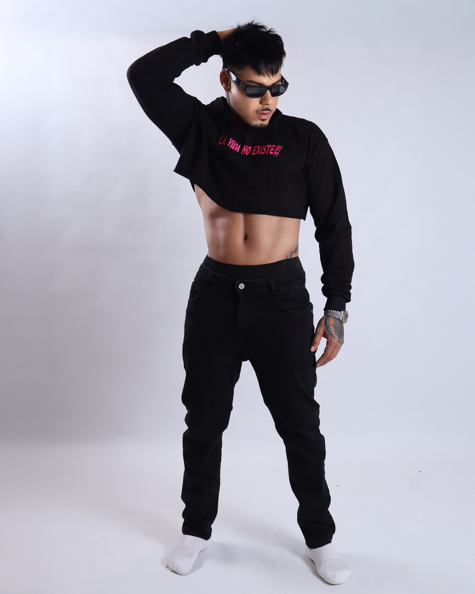 El Crop Hoodie LA VIDA NO EXISTE combina actitud, estilo urbano y una estética moderna. Su diseño cropped con ajuste relajado aporta un look atrevido y contemporáneo, mientras que el contraste del negro con la tipografía roja crea un impacto visual fuerte y auténtico.